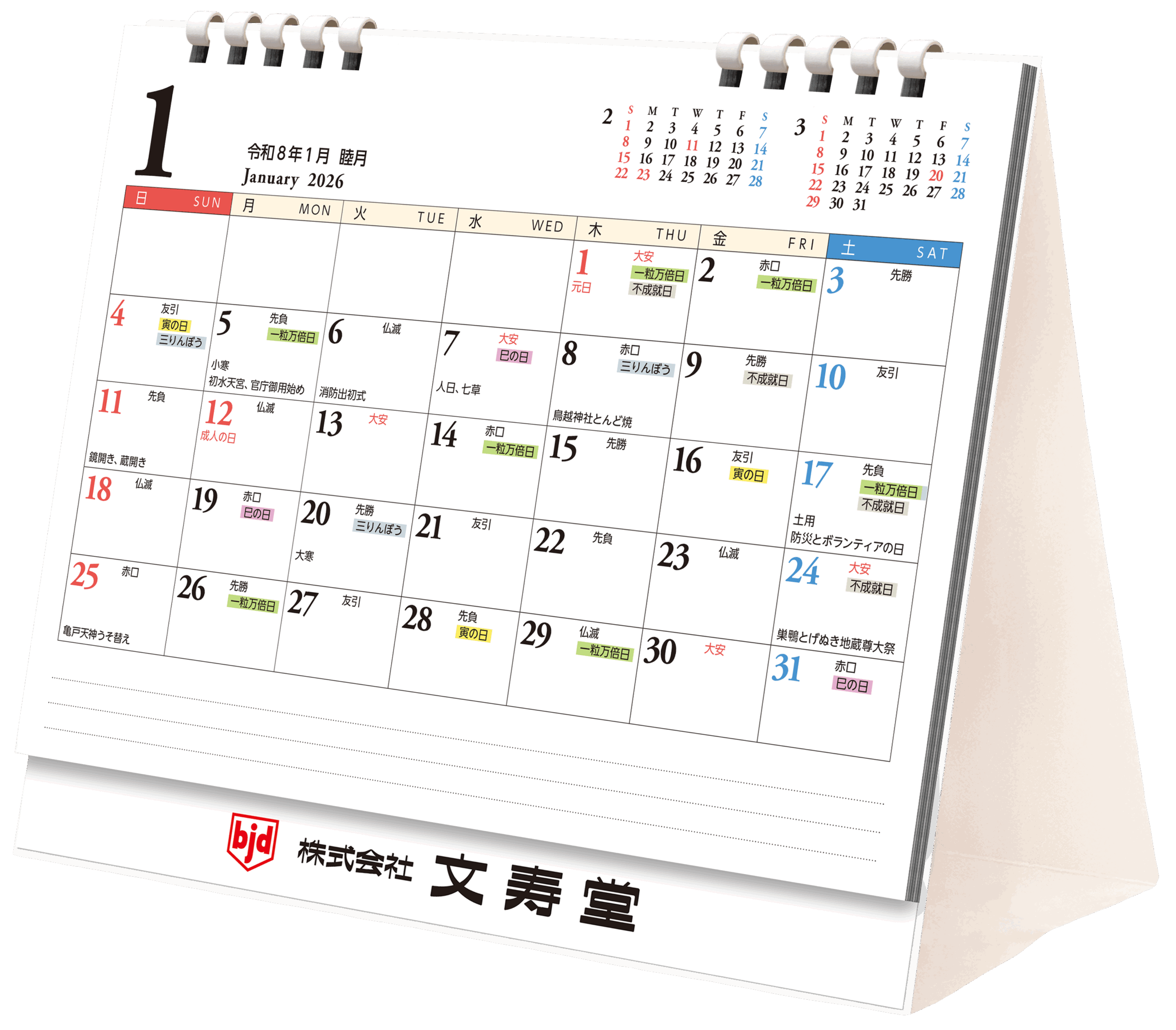 • カレンダー下部に貴社名を無料で名入れ可能