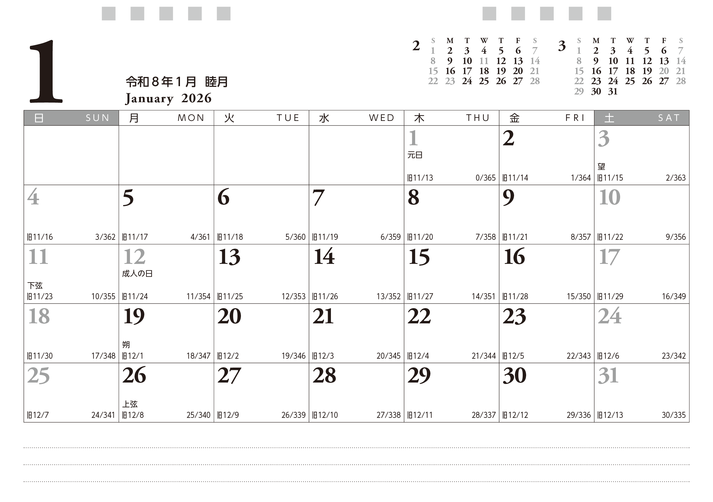 • 1ヶ月を表・裏の2面で構成